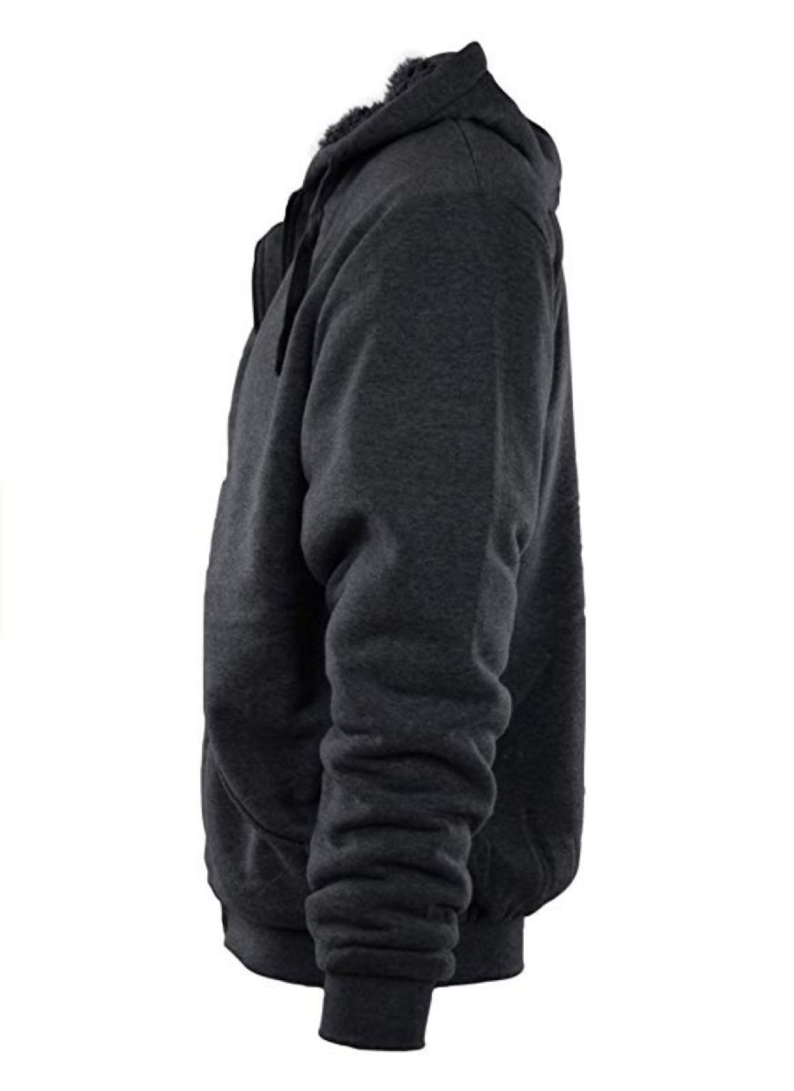 Stay warm and cozy all winter long with our Big Men's Solid Fur-Lined Zip Up Hoodie in Charcoal. This hoodie is made from a thick, warm fleece material with a luxurious fur lining for ultimate comfort.