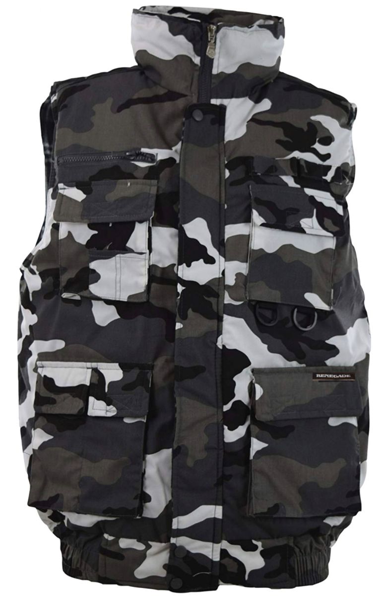 Stay warm, dry, and organized with our Men's Camouflage Multiple Pocket Water-Resistant Utility Padded Vest in Urban Camouflage. This versatile vest is perfect for outdoor activities, workwear, or everyday wear. Featuring multiple pockets for storage and a water-resistant outer shell, this vest is both functional and stylish.