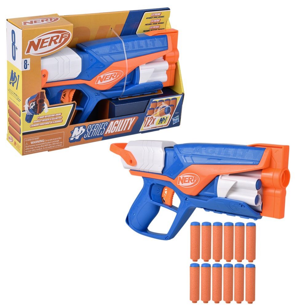 Add to WishlistThe Nerf N-Series Agility is a compact and powerful blaster, perfect for quick-fire action. Its 6-dart rotating drum and easy-to-use pull-back priming mechanism make it a reliable choice for any Nerf battle.