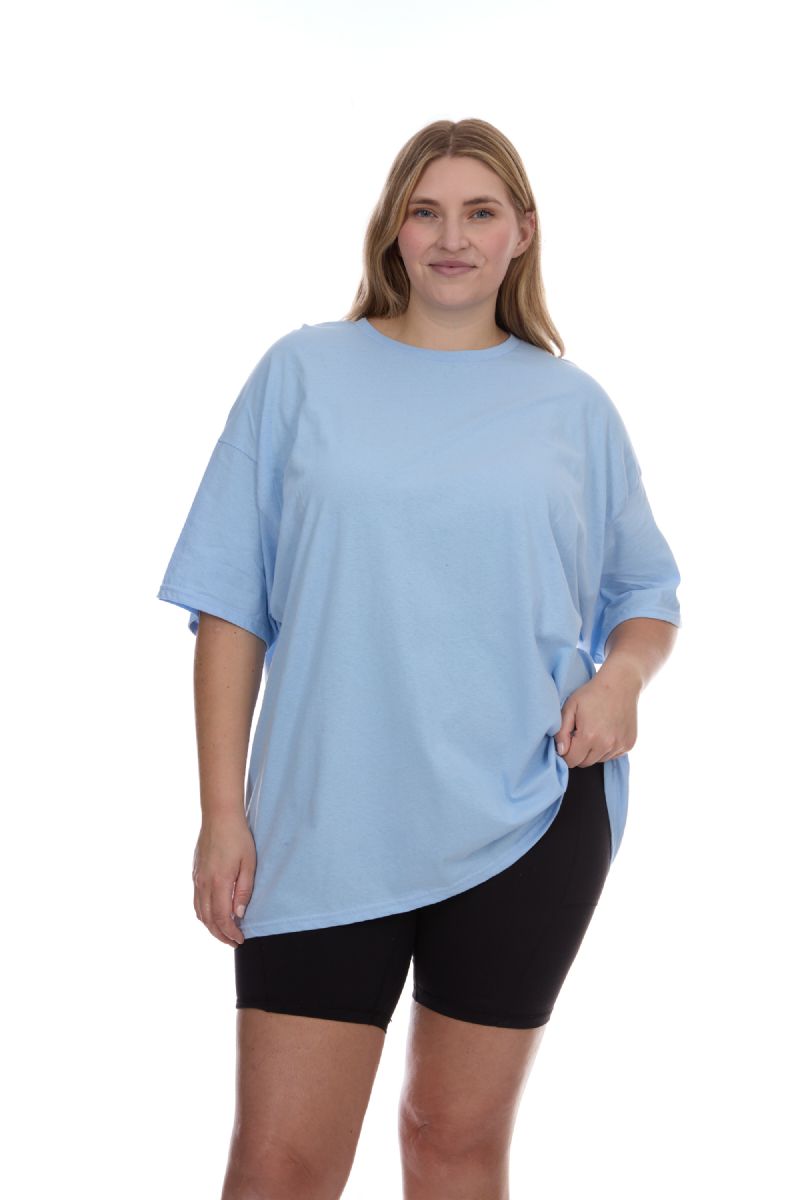 This Women's Oversized Cotton Crew Neck Short Sleeve T-Shirt in Assorted Colors and Size 2X-Large offers ultimate comfort and a trendy, relaxed silhouette for every wardrobe. Crafted from soft, breathable 100% cotton (or a high cotton blend), it provides a smooth feel against the skin and is perfect for all-day wear. The oversized design features a roomy fit and often dropped shoulders, creating an effortlessly cool and comfortable look that's ideal for casual outings, lounging, or layering. This versatile mix of colors ensures a fresh option for any outfit, making these T-shirts a go-to staple for a chic, understated style.